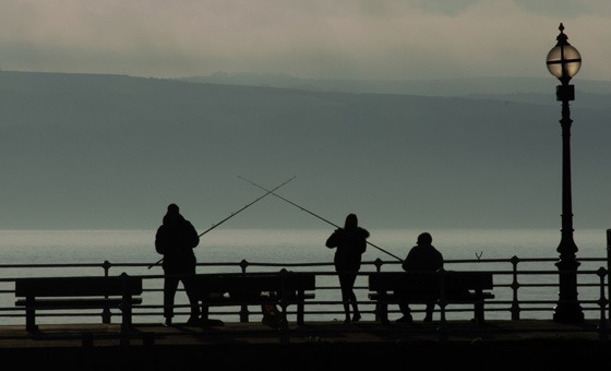 Fishing from the pier at sunset