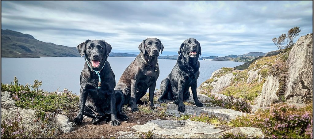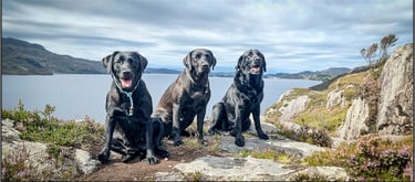 Three black dogs above Loch Morar